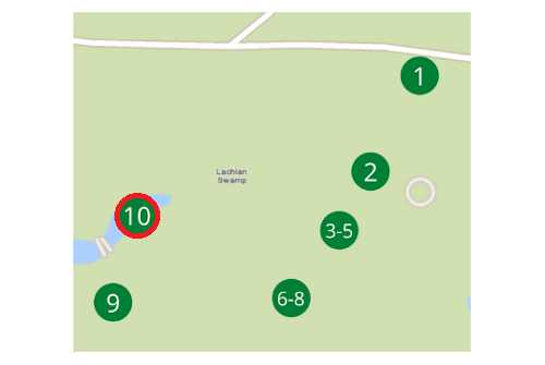 Explore the remarkable world of trees and the creatures that live at Lachlan Swamp. These trees thrive in a wetland environment where there is a constant supply of freshwater from an underground aquifer. You may see or smell this spring water. The smell can be pungent, like ‘rotten eggs’ from the sulphuric compounds. The colour of the water looks orange from naturally occurring iron and bacteria.