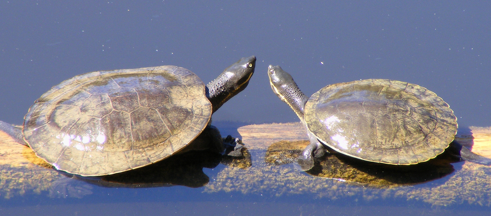 The Sydney basin turtle (Emydura macquarii), and the snake-necked turtle (Chelodina longicollis) are the most commonly seen of the five native species recorded in Centennial Parklands. They can sometimes be seen basking on tree branches, drain covers and the banks of the ponds.