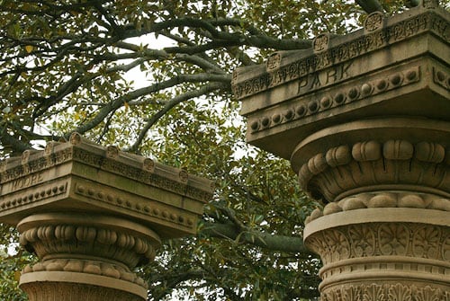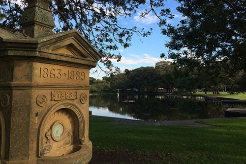 All eight sets of entrance gates into Centennial Park were built between 1887 and 1900. With their massive carved stone pillars and ornate design, the Park's Paddington Gates are its most imposing.